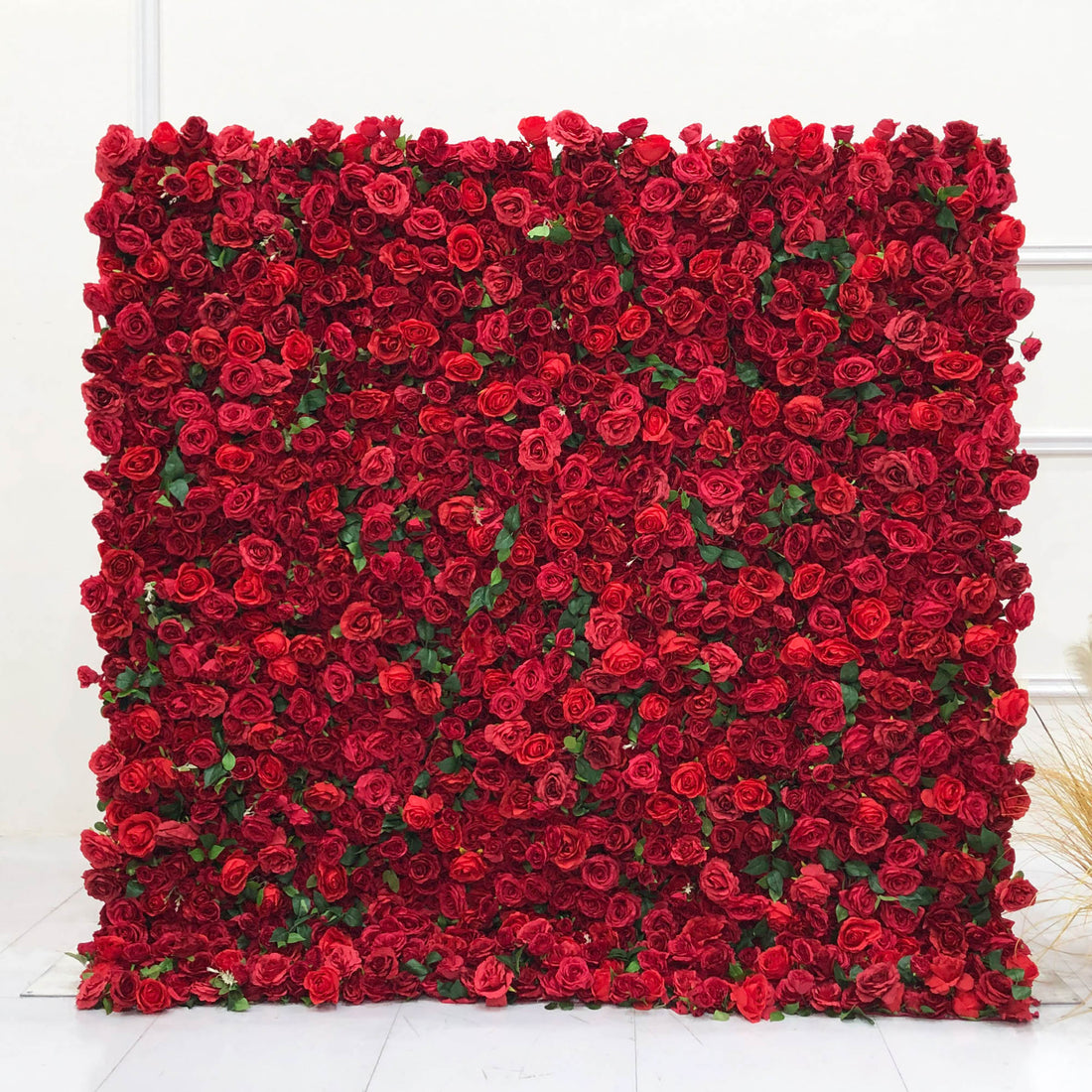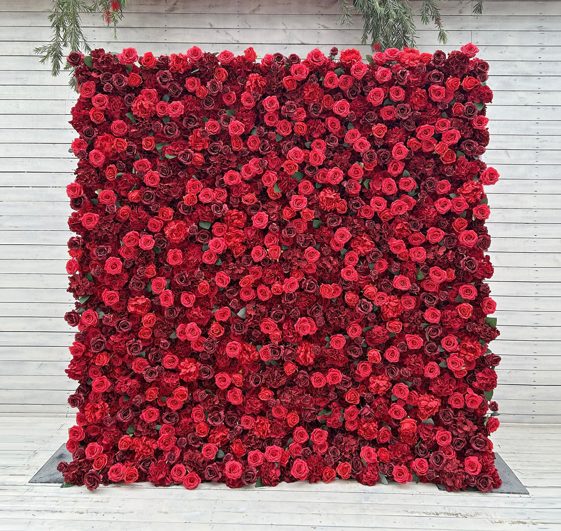 Beda Flower 5D Red Rose Greenery Roll Up Silk Flower Wall Panel Wedding Event Backdrop Decor