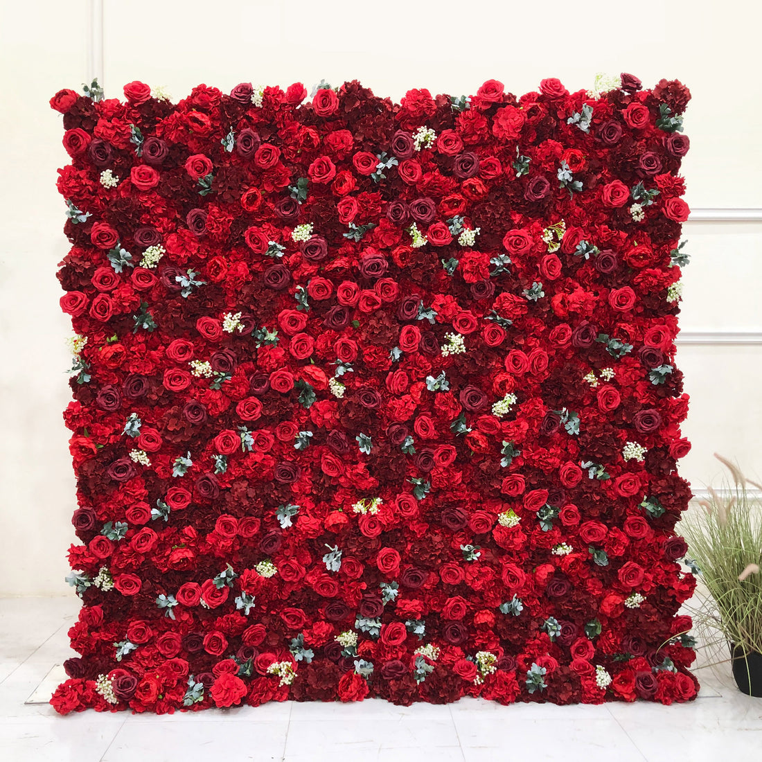 Beda Flower 5D Red Burgundy Rose Hydrangea White Little Flower Roll Up Silk Flower Wall Panel Wedding Event Backdrop Decor
