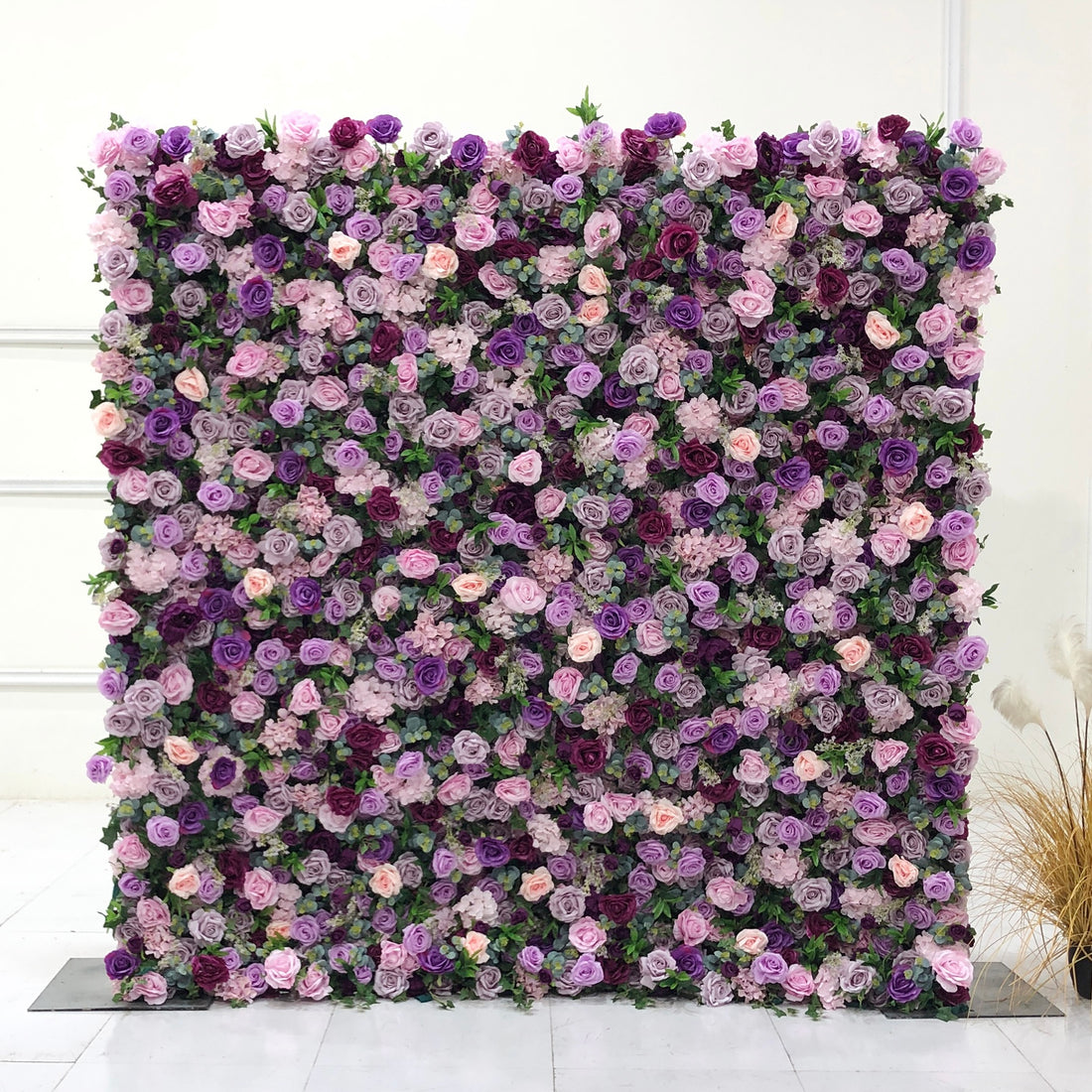 Beda Flower 5D Purple Pink Burgundy Rose Pink Hydrangeas Greenery Roll Up Silk Flower Wall Panel Wedding Event Backdrop Decor