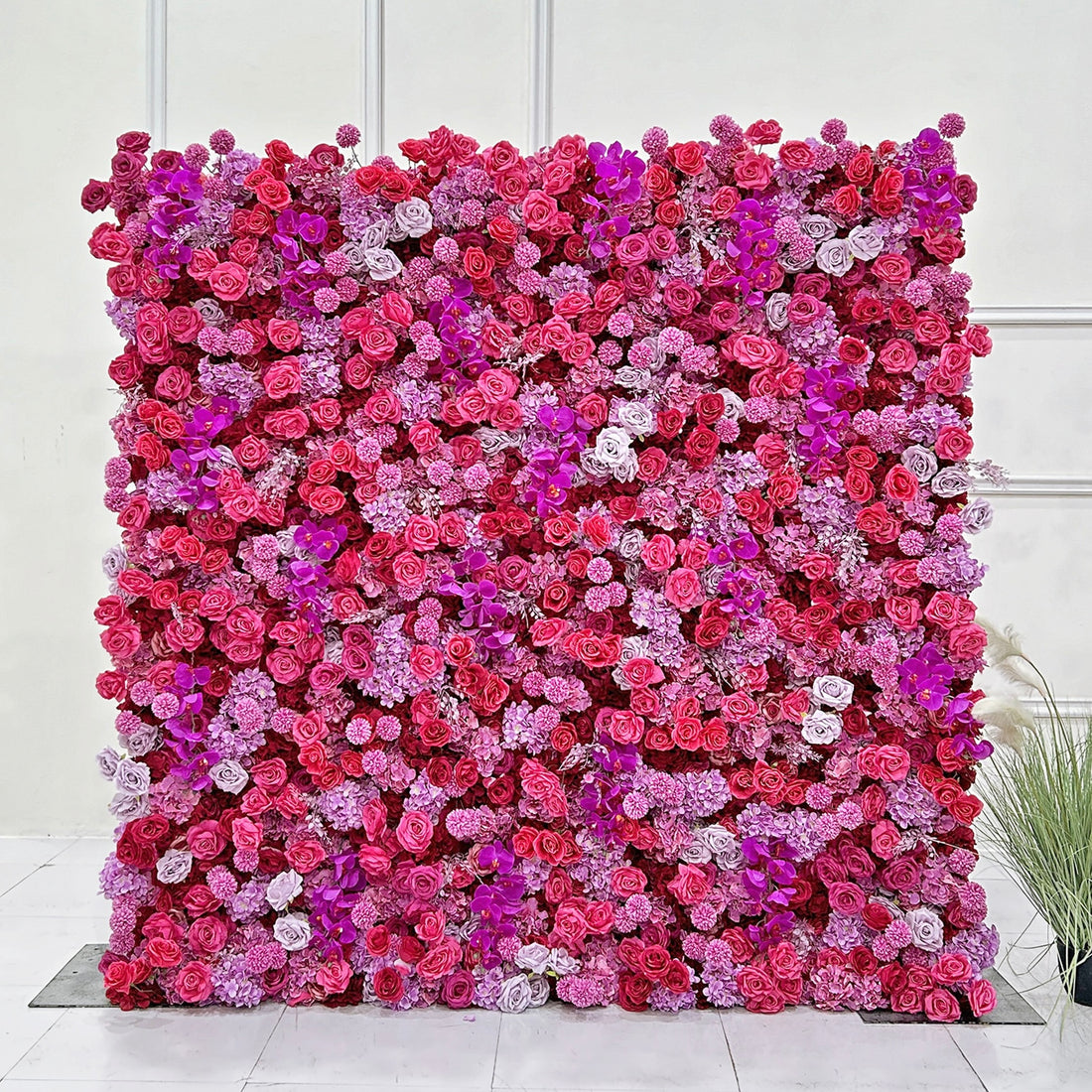 Beda Flower 5D Pink Dark Red Rose Phalaenopsis Roll Up Silk Flower Wall Panel Wedding Event Backdrop Decor