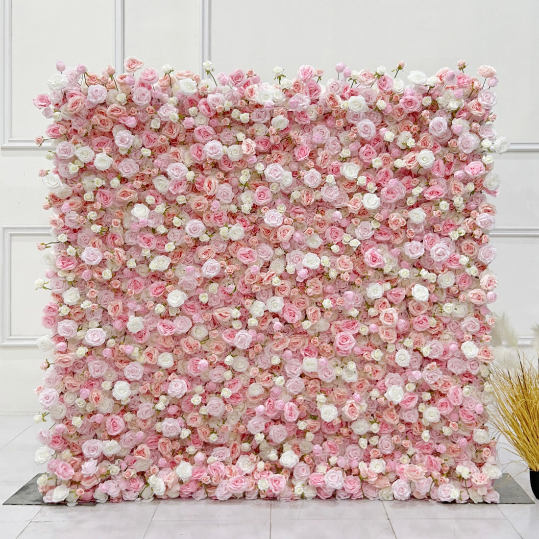 Beda Flower 5D Pink Cream White Rose Roll Up Silk Flower Wall Panel Wedding Event Backdrop Decor