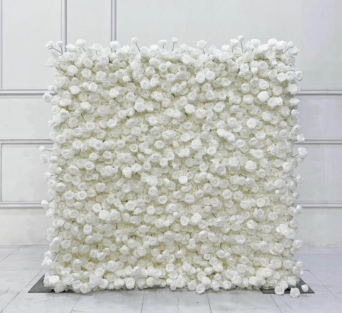 Beda Flower 5D Pure White Rose Peony Roll Up Silk Flower Wall Panel Wedding Event Backdrop Decor