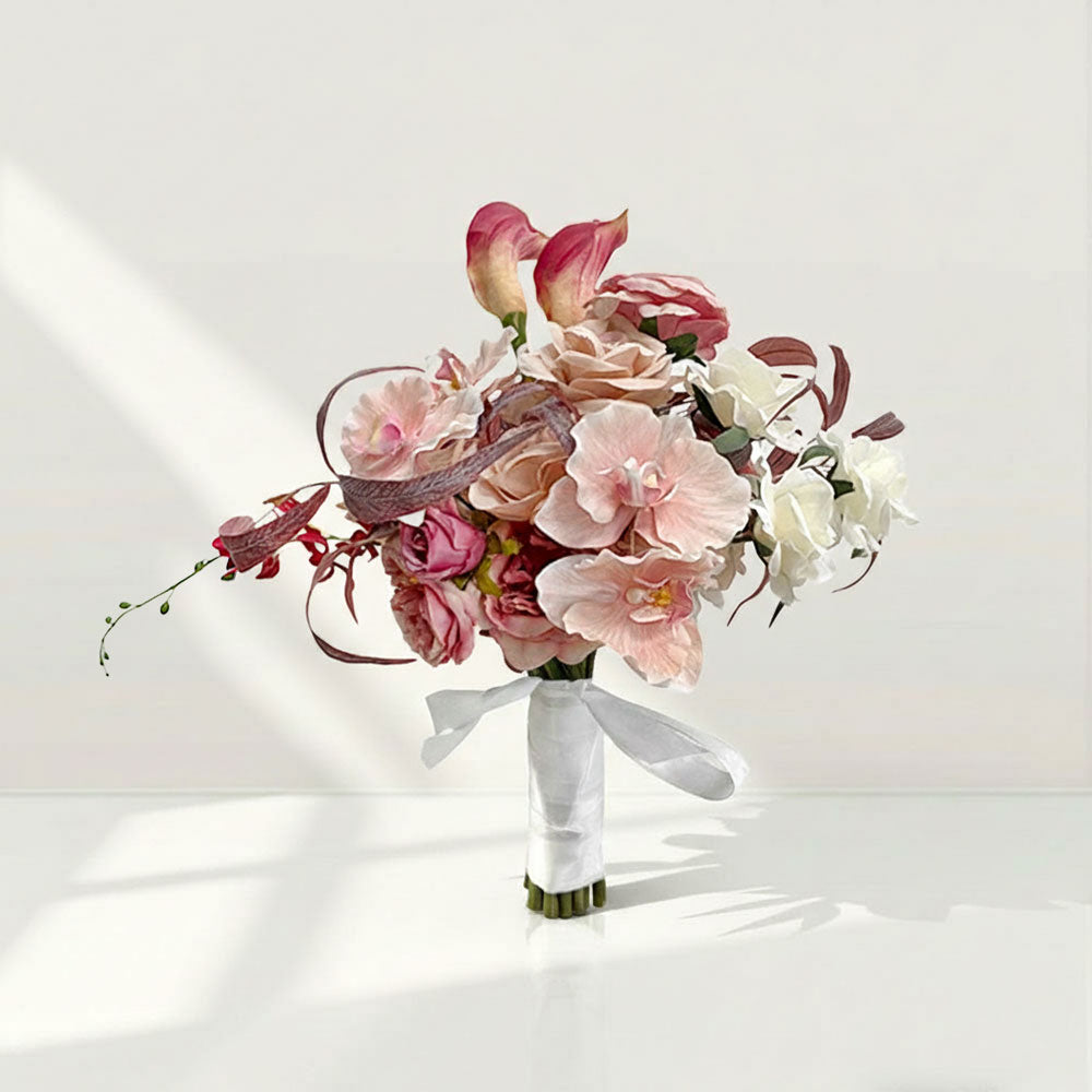 Beda Blush Pink Real touch artificial flowers wedding bouquets vibrant Roses Orchids stems