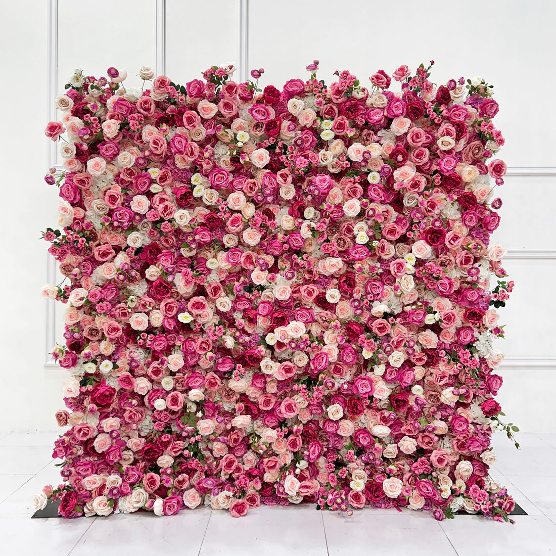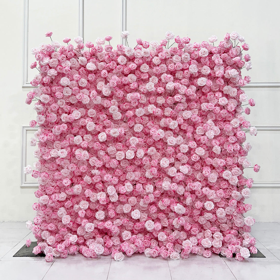 Beda Flower 7D Bright Pink Light Pink Rose Roll Up Silk Flower Wall Panel Wedding Event Backdrop Decor