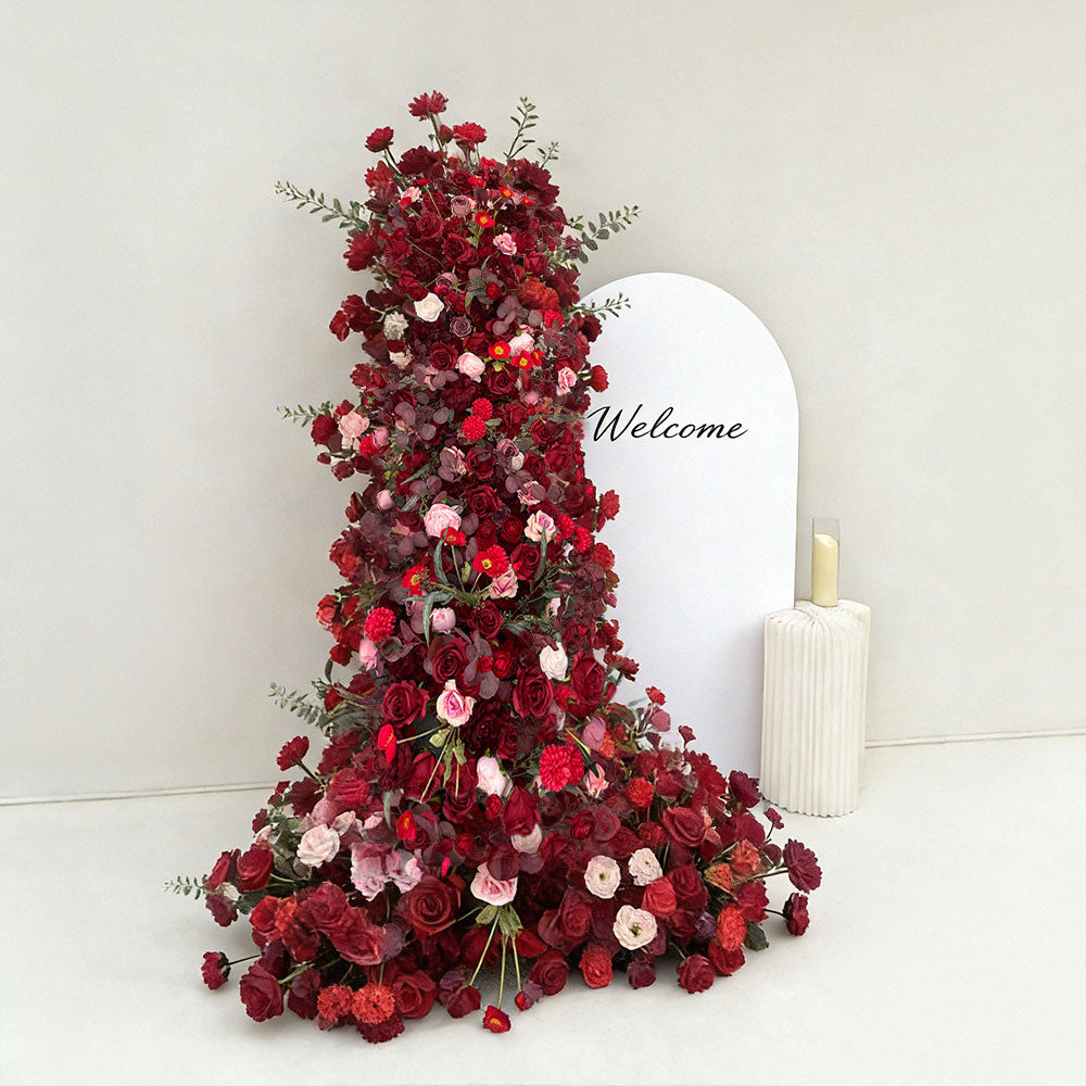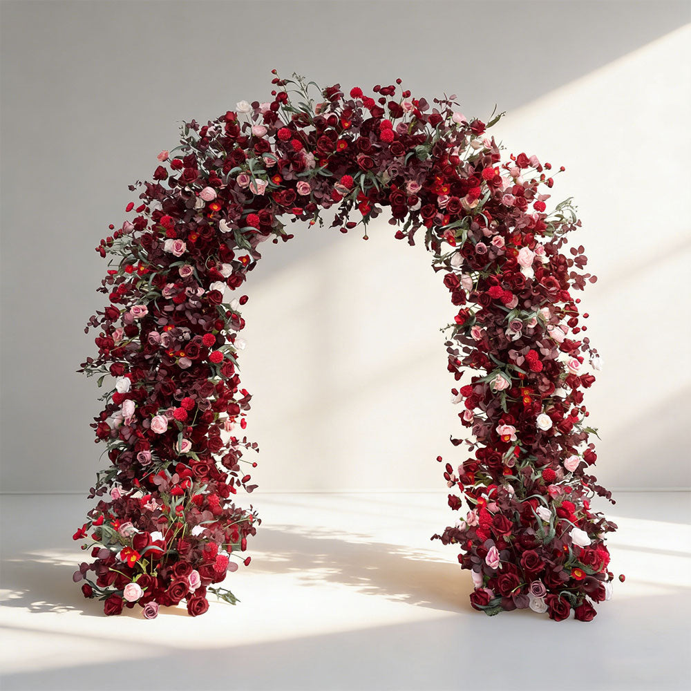 Beda red blooms roses artificial flowers arch pillar wedding elegant indoor and outdoor use backdrop decor