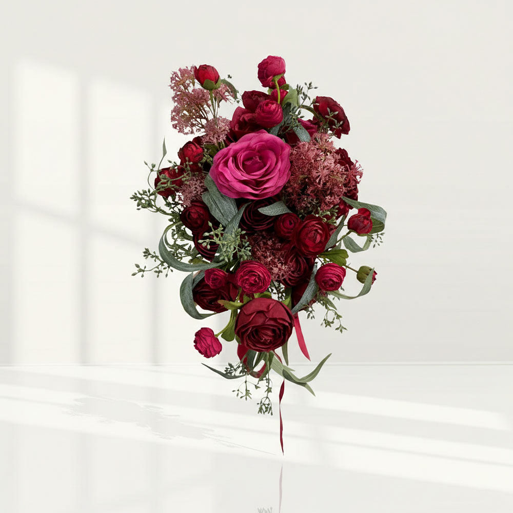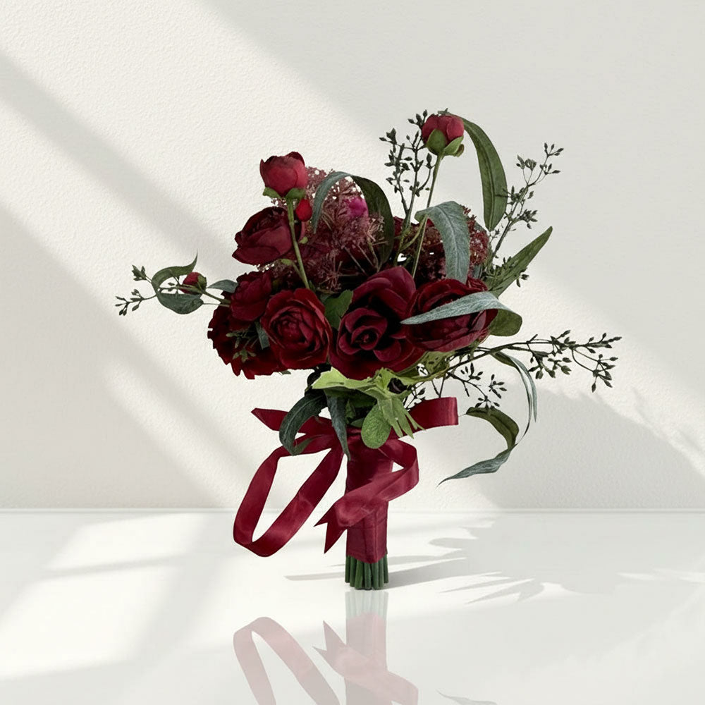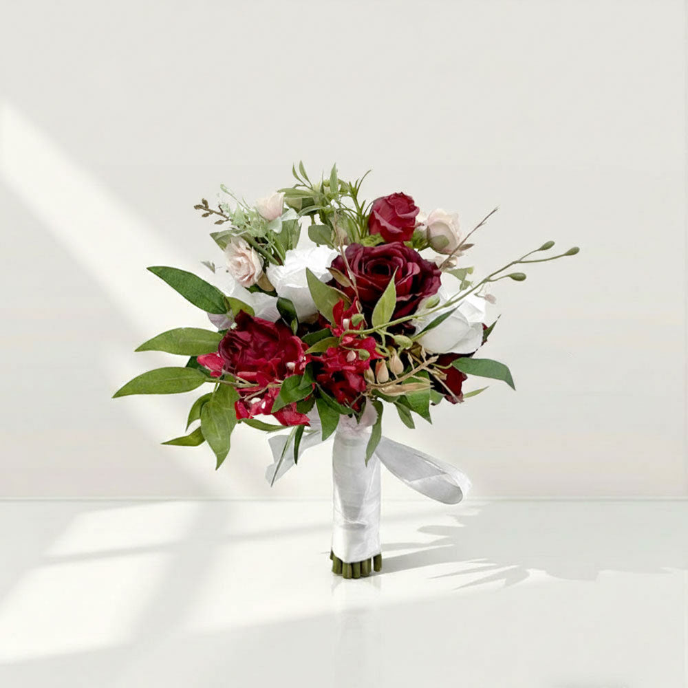 Beda Red Realistic Wine silk artificial flowers wedding bouquets lush Lace arrangements