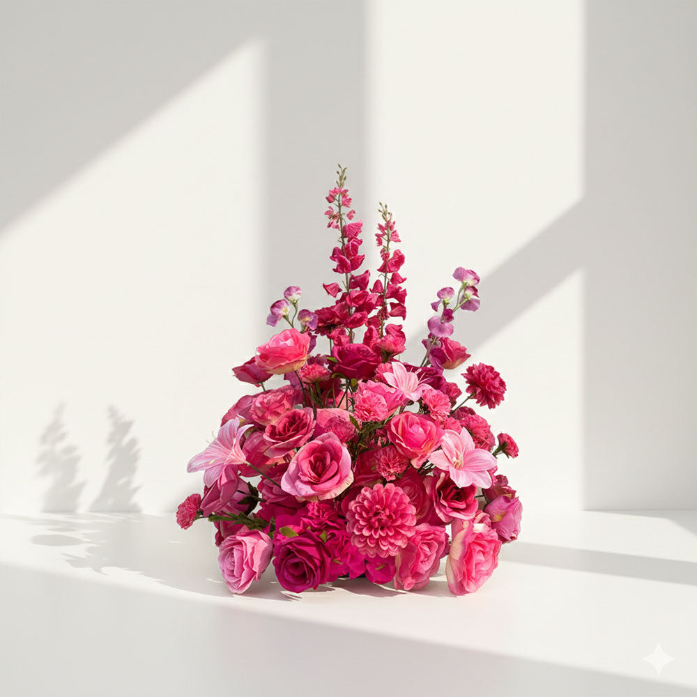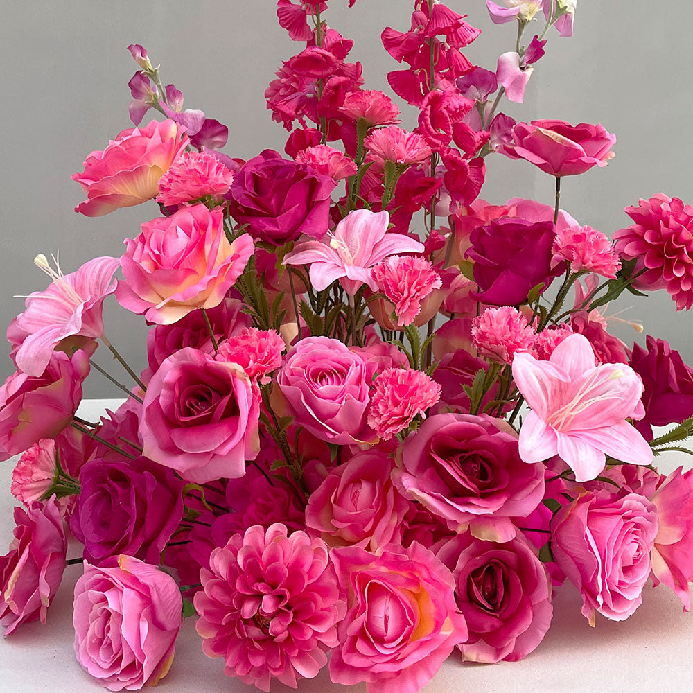 2ft Faux Flowers Banquet Table Centerpieces with Roses in Pink