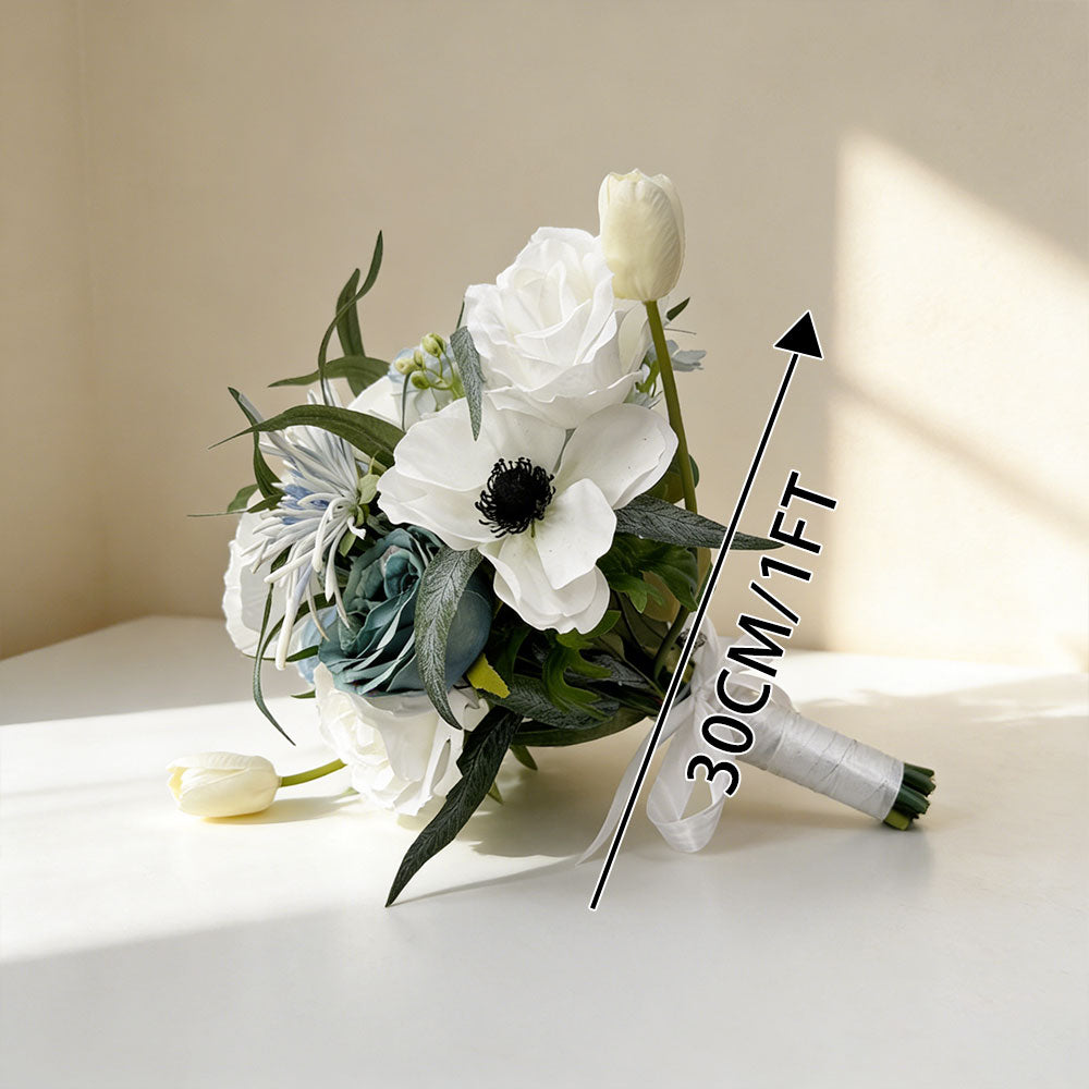 Beda White Elegant Tailored artificial flower wedding bouquets silk Anemone blossom sets