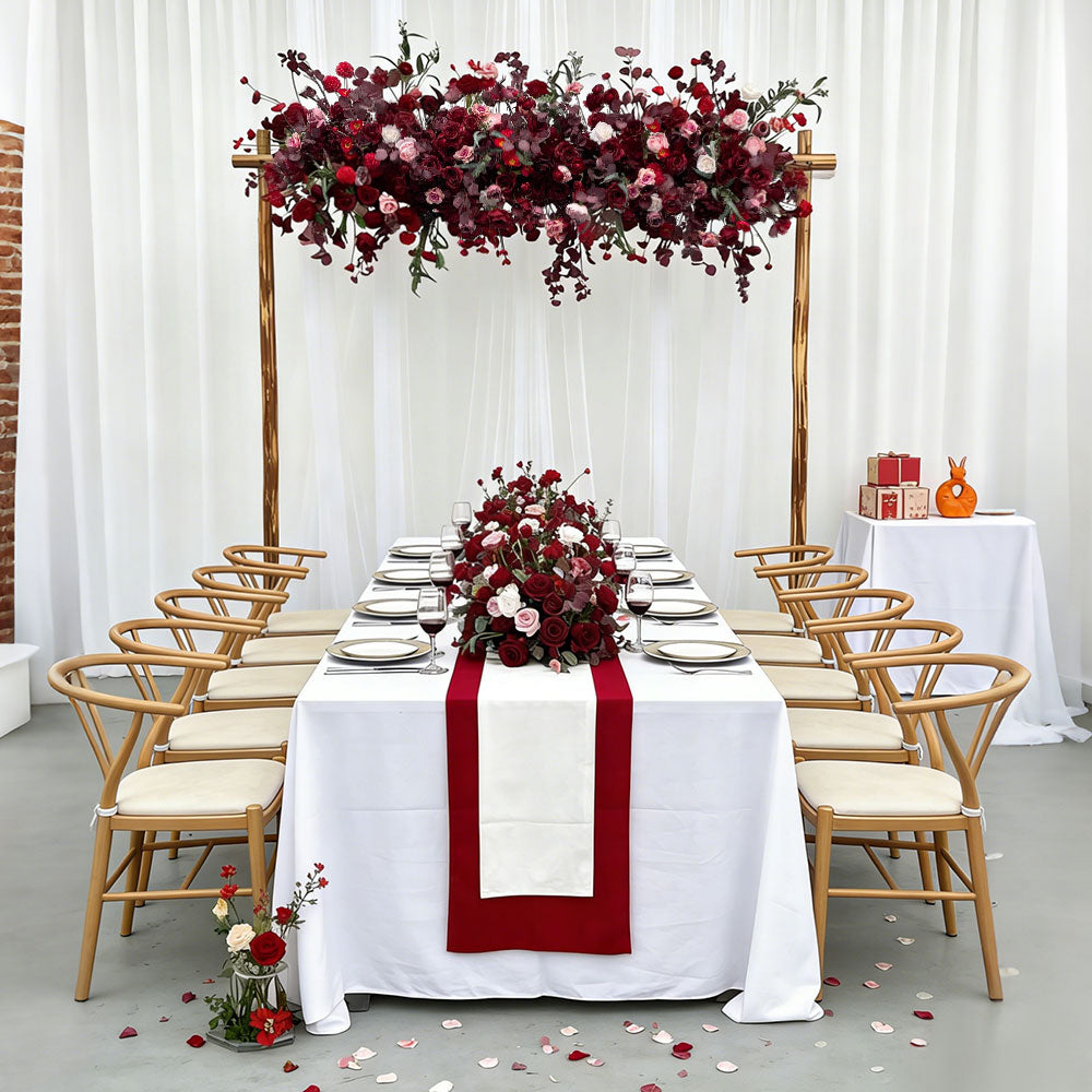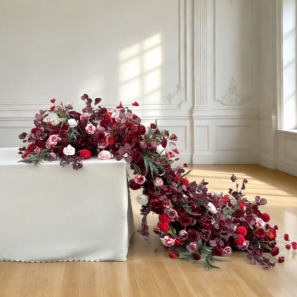 Beda Burgundy fake flowers hanging runner elegant durable reusable table decor at wedding