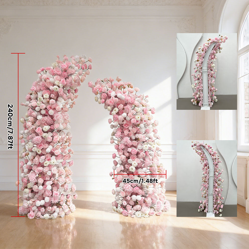 Beda Elegant Floral Wedding Arch Pillars Horn Shaped Blush Pink Artificial Flower Arrangements Free Shipping