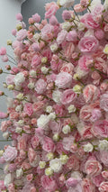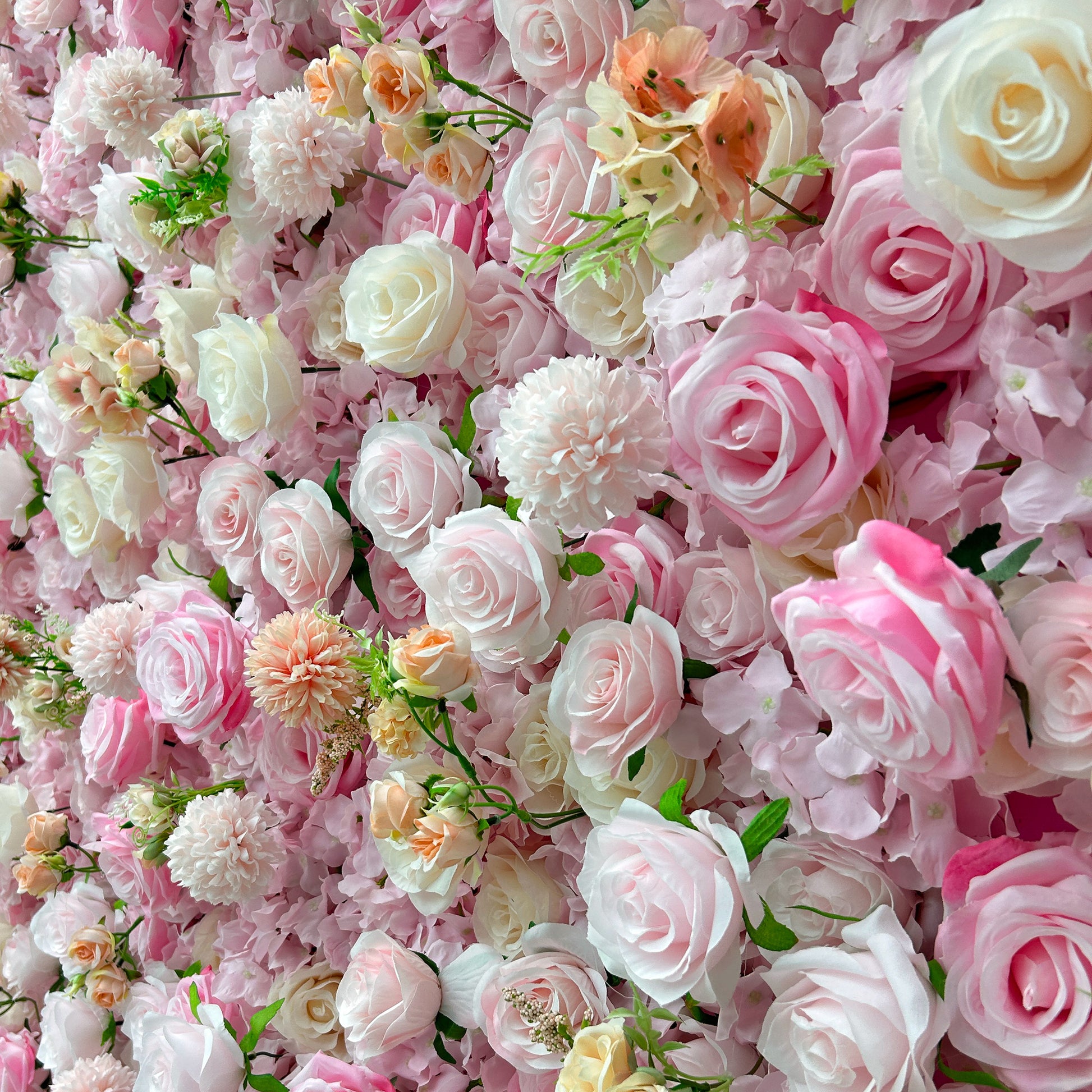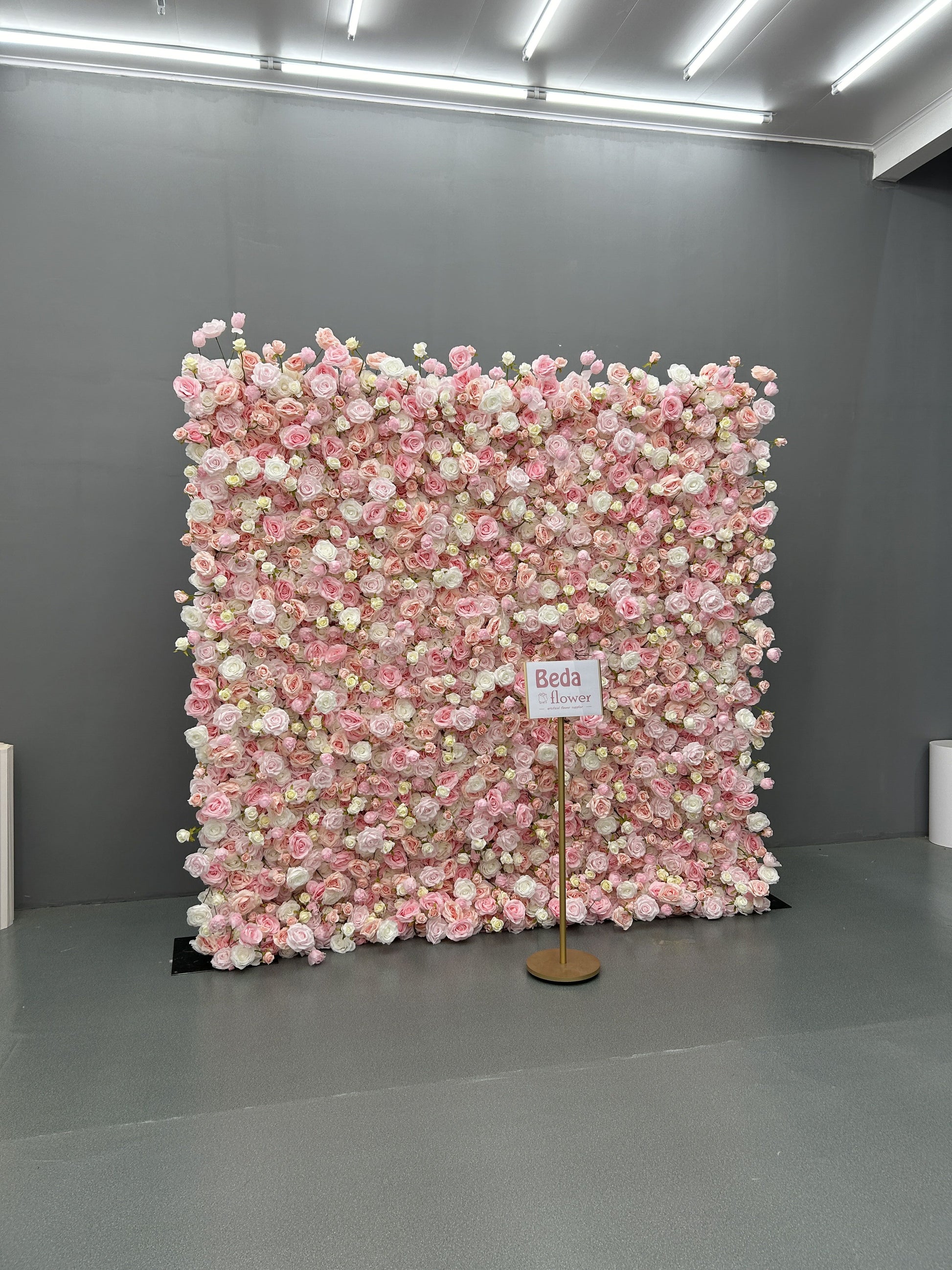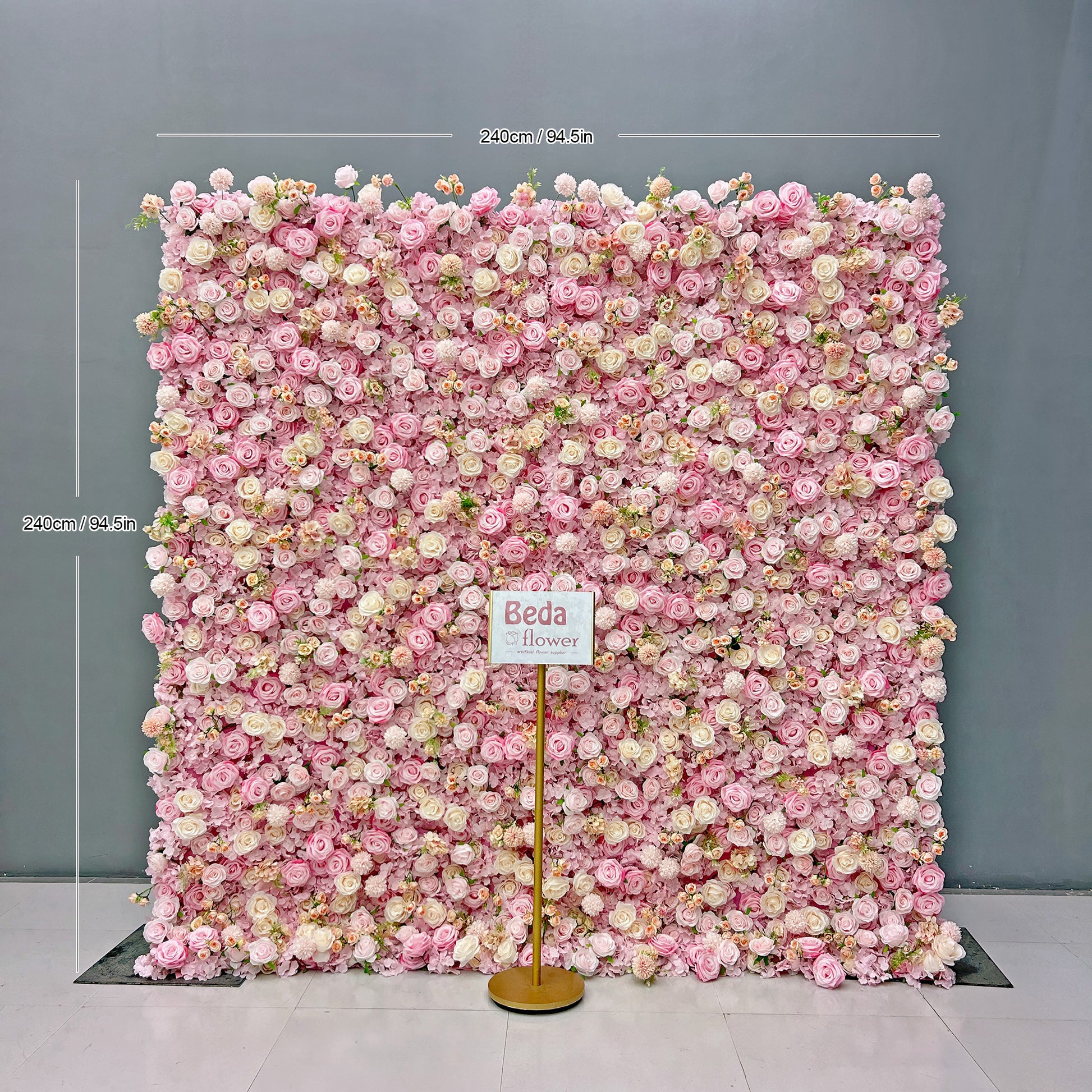 Beda Flower 3D Pink and Ivory Rose Pink Chamomile Hydrangeas Roll Up Silk Flower Wall Panel Wedding Event Backdrop Decor