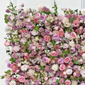 Beda Flower 5D Pink and Peach Rose Peony Greenery Roll Up Silk Flower Wall Panel Wedding Event Backdrop Decor