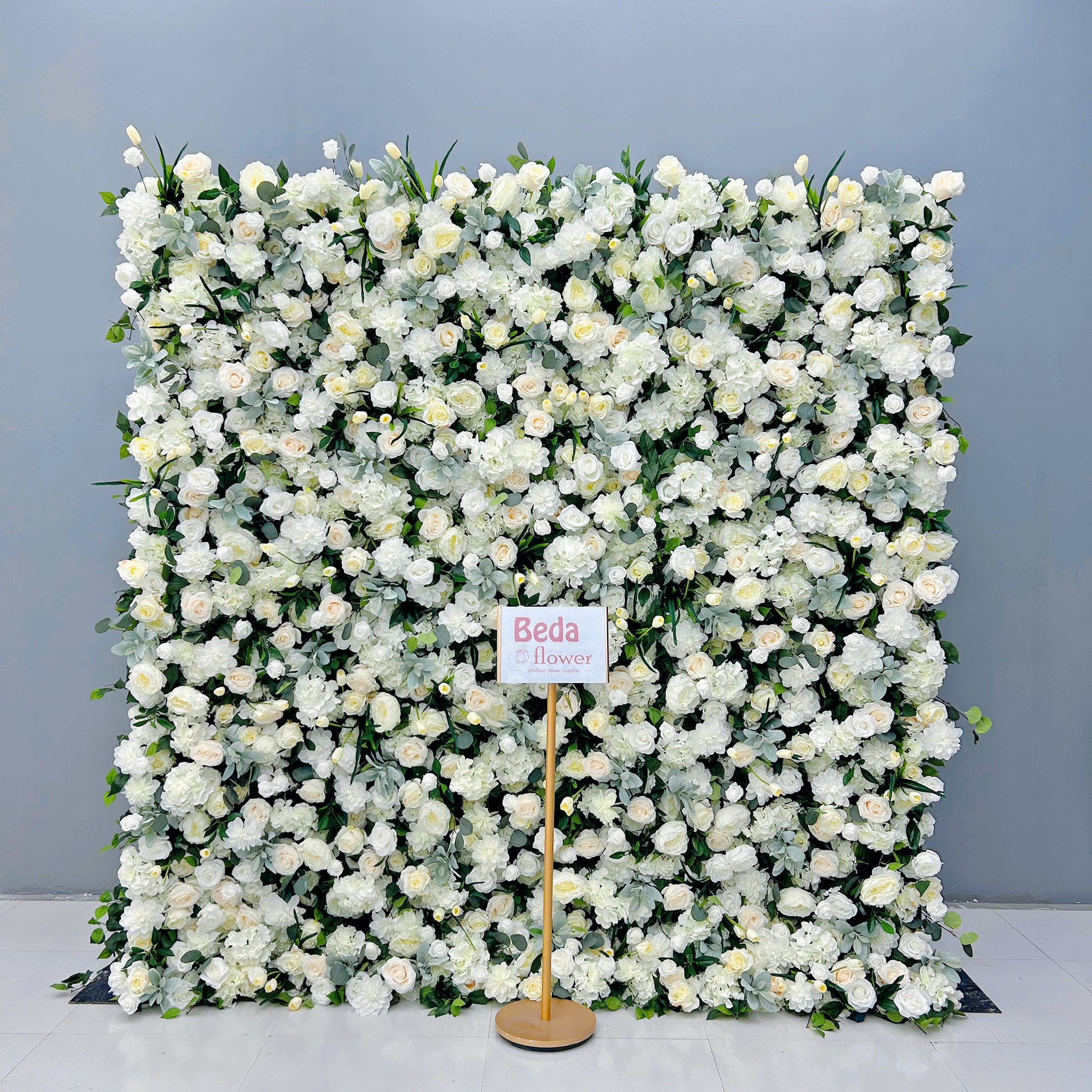 Beda Flower 5D Pure White Rose Hydrangeas Greenery Roll Up Silk Flower Wall Panel Wedding Event Backdrop Decor