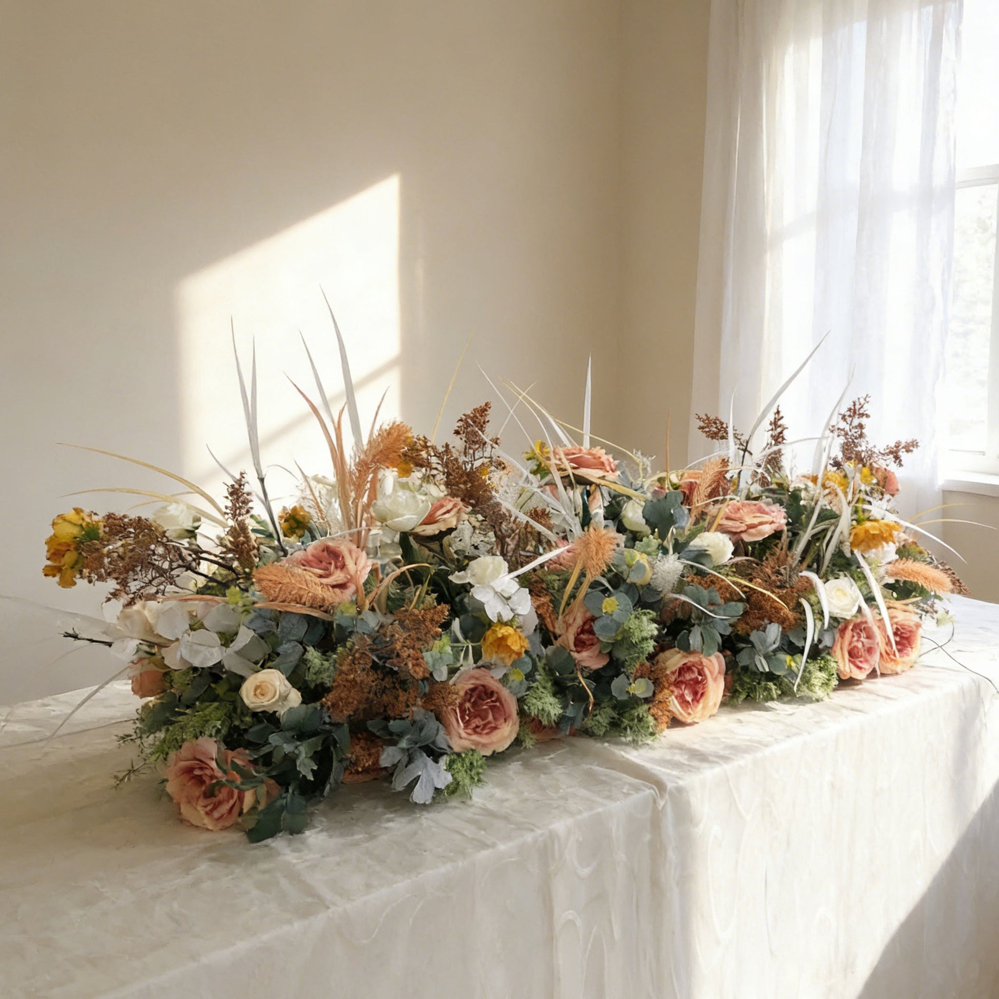 Crafted with highly realistic flowers, these artificial flower strips feature premium fabric with lifelike texture and color. Made from high-quality, resilient materials and finished with eco-friendly pigments, the fabric offers excellent elasticity and shape recovery even after compression during packing or transport. The superior dyes ensure soft, natural tones that closely resemble real flowers. Designed for luxury weddings and high-end events, these flower strips deliver an elegant and refined visual impact.