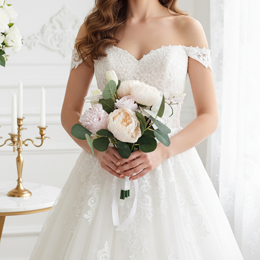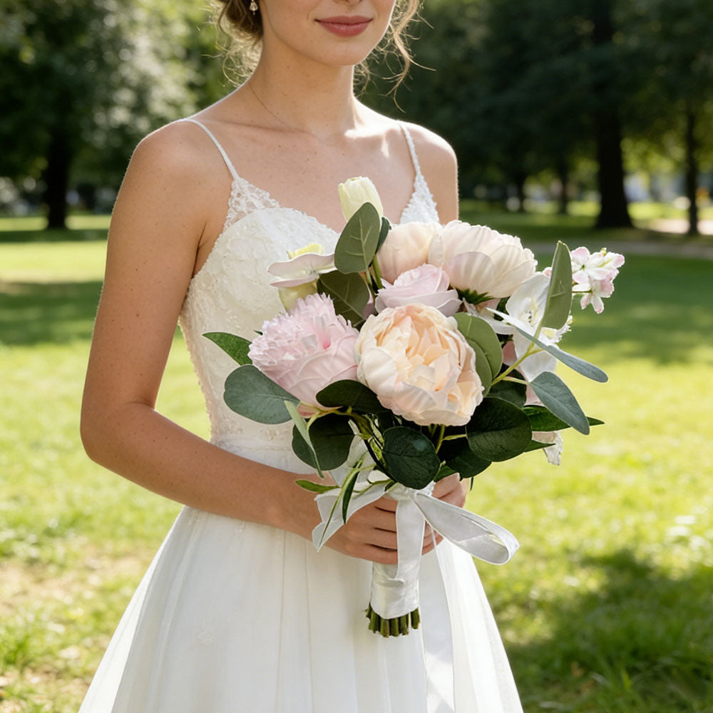 Beda Pink Green Realistic artificial flowers wedding bouquets lush garden rose pieces