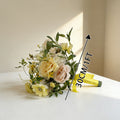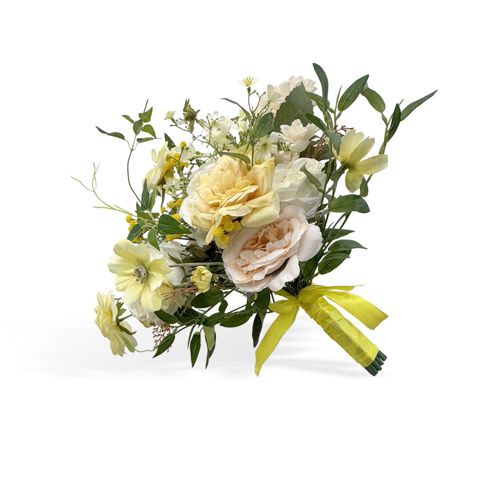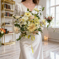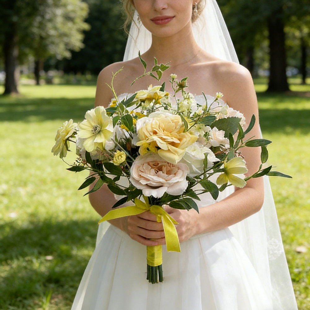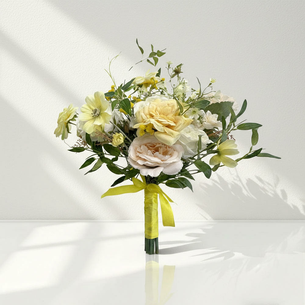 Beda Yellow Artificial Flowers Wedding Bridal Bouquets with Premium Silk Peony and Eucalyptus